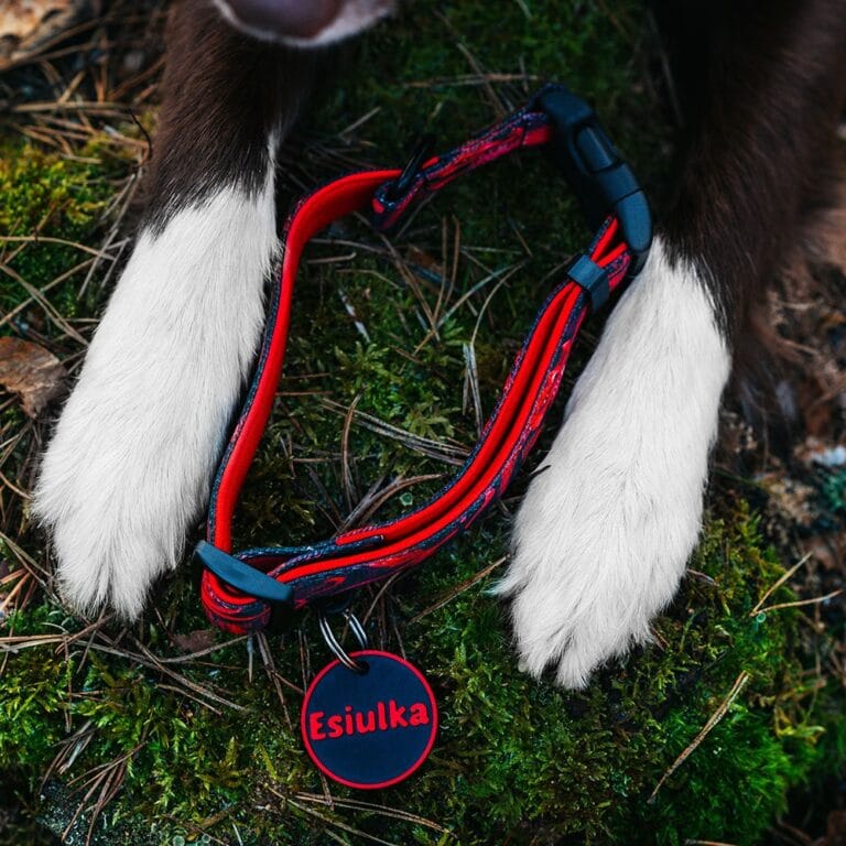 Zmierz obwód szyi w najszerszym punkcie miarą krawiecką. A następnie zmierz obwód klatki piersiowej w najszerszym punkcie, (około 3 centymetrów) za przednimi łapami – pasek wokół klatki powinien przechodzić na środku linii żeber, gdyż, umiejscowiony bliżej łap, może obcierać paszki. Sprawdź, czy możesz włożyć pod miarę dwa palce